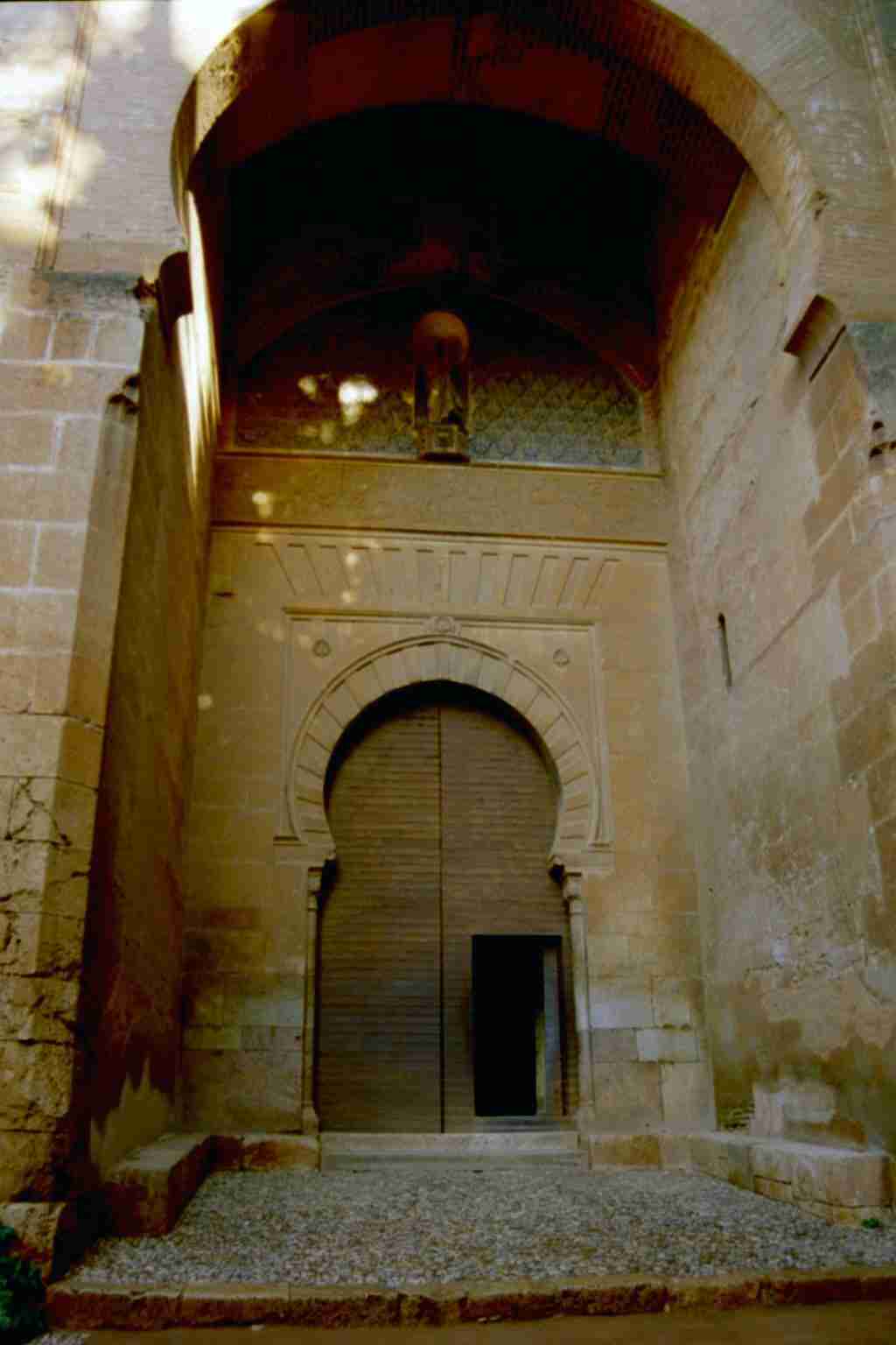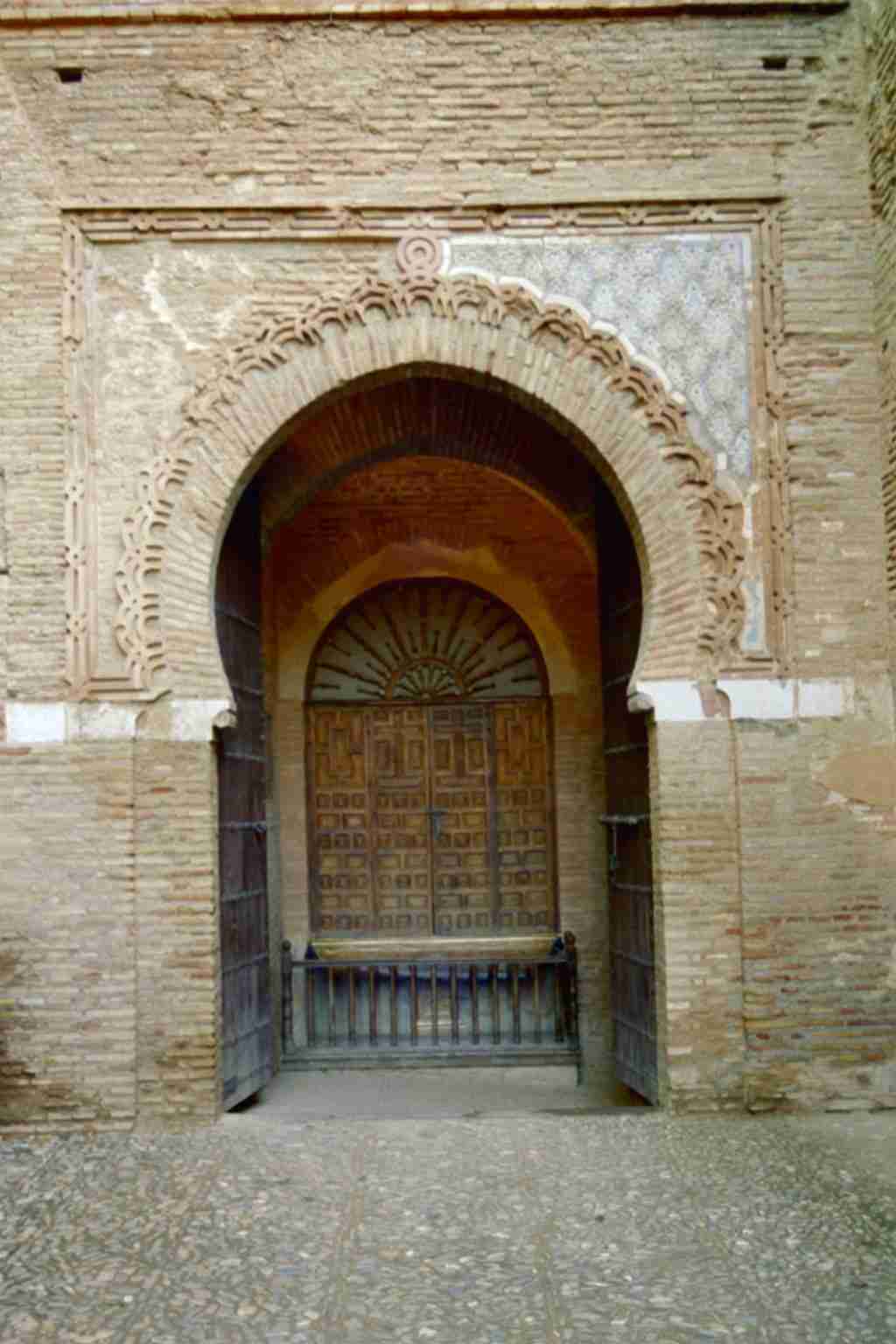 Der Weg durch das Tor verläuft nicht direkt sondern beschreibt zur besseren Verteidigung des Tores einen Zick-Zack-Kurs. Beim betreten des Tores von der Alhambra aus dominiert ein Altarretabel die Ansicht.