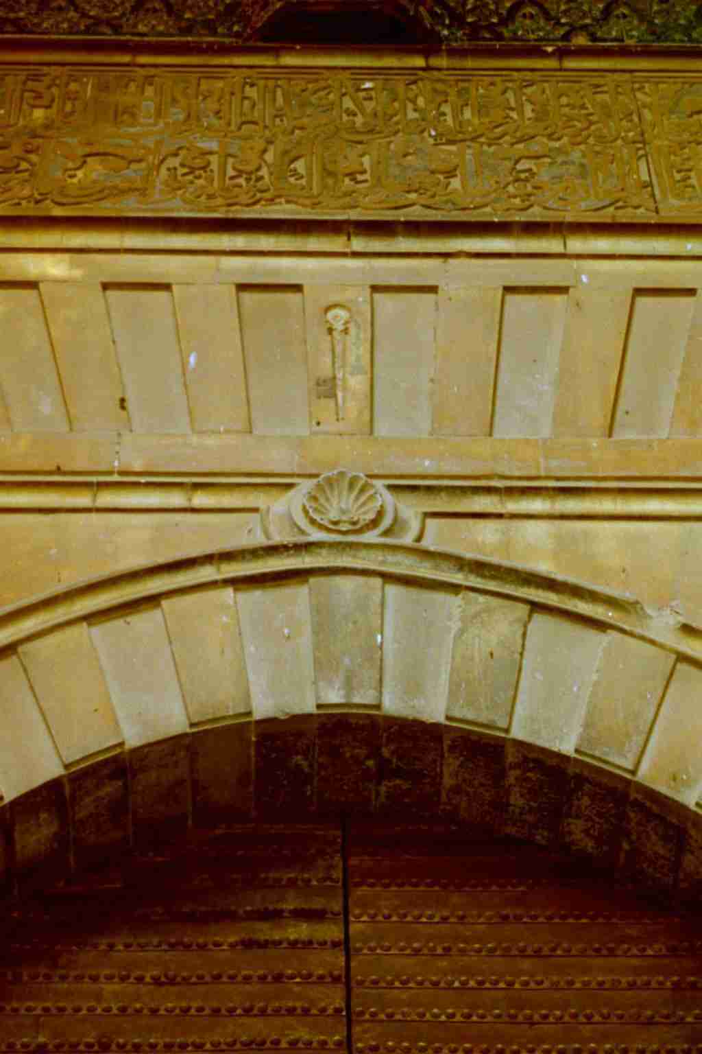 Von der Aussenseite ziert ein anderer, typischer Schlussstein das Tor. Die nach oben gestreckte Hand symbolisiert die fünf Säulen des Koran.