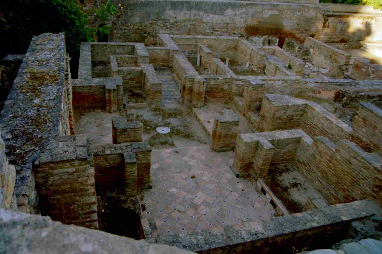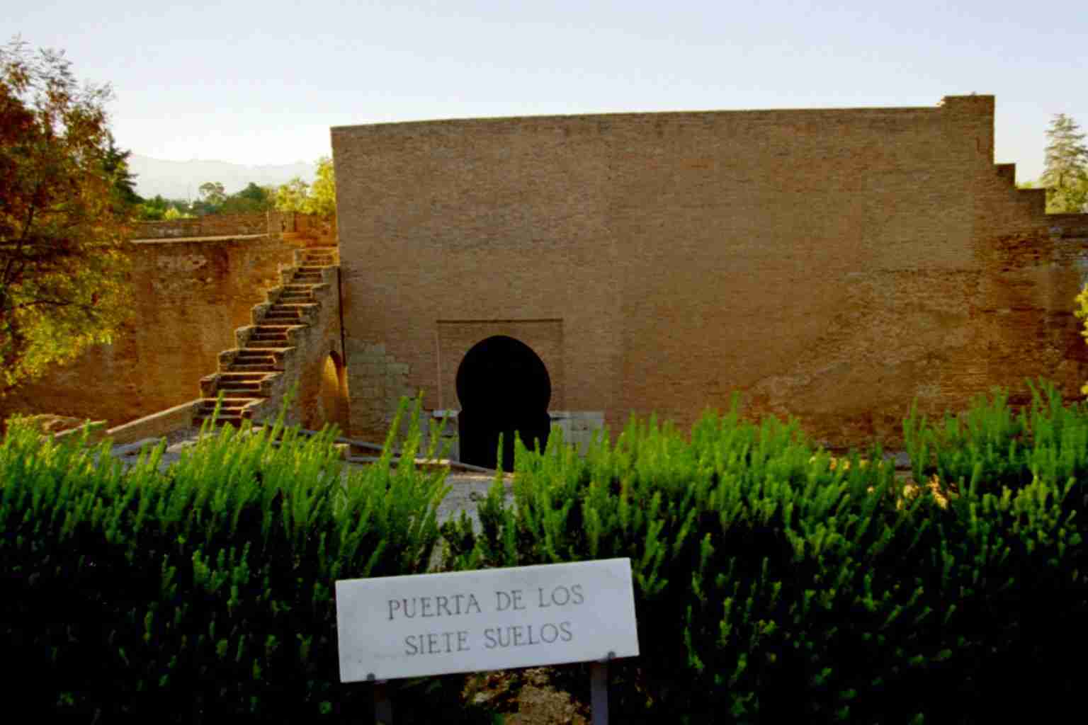 Tor der sieben Stockwerke ("Puerta de los siete Seulos"). Dieses Tor war der Eingang zum oberen Teil der Alhambra, zur Medina. Im 14. Jahrhundert auf den Resten eines früheren Tores erbaut, wurde es 1812 zusammen mit einem erheblichen Mauersegmentvon den Napoleonischen Truppen auf ihrem Rückzug aus der Festung gesprengt. Dank dem Zeugnis alter Stiche konnte das Tor 1960 rekonstruiert werden.
