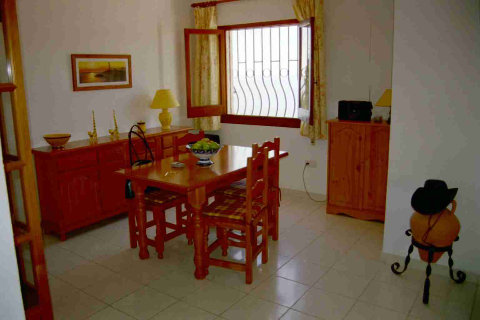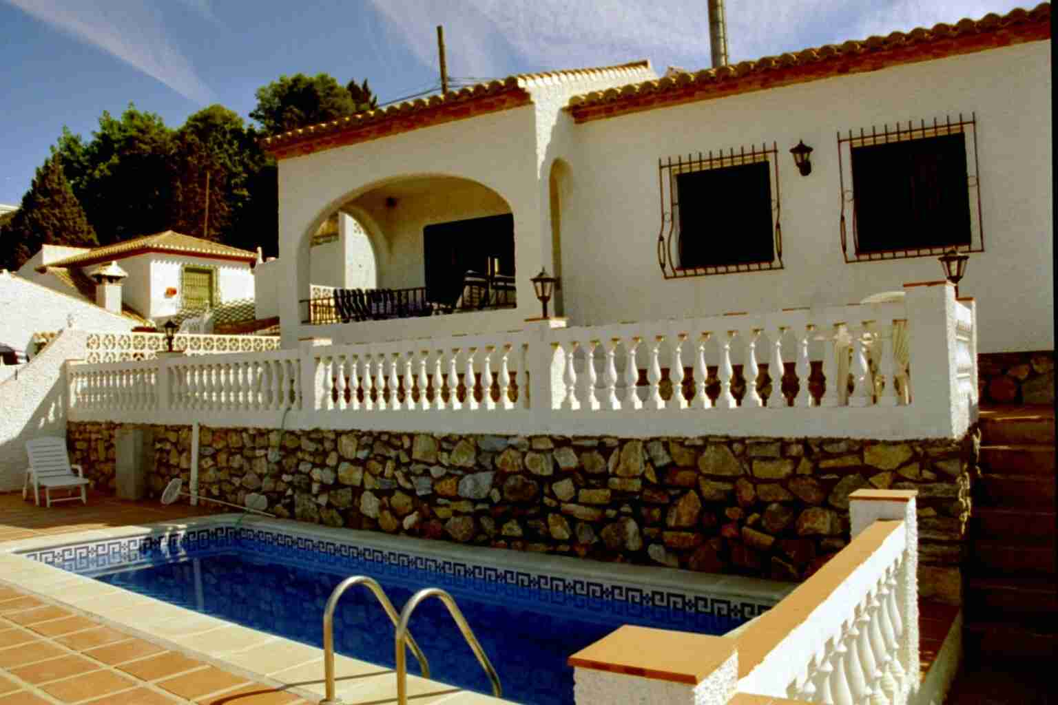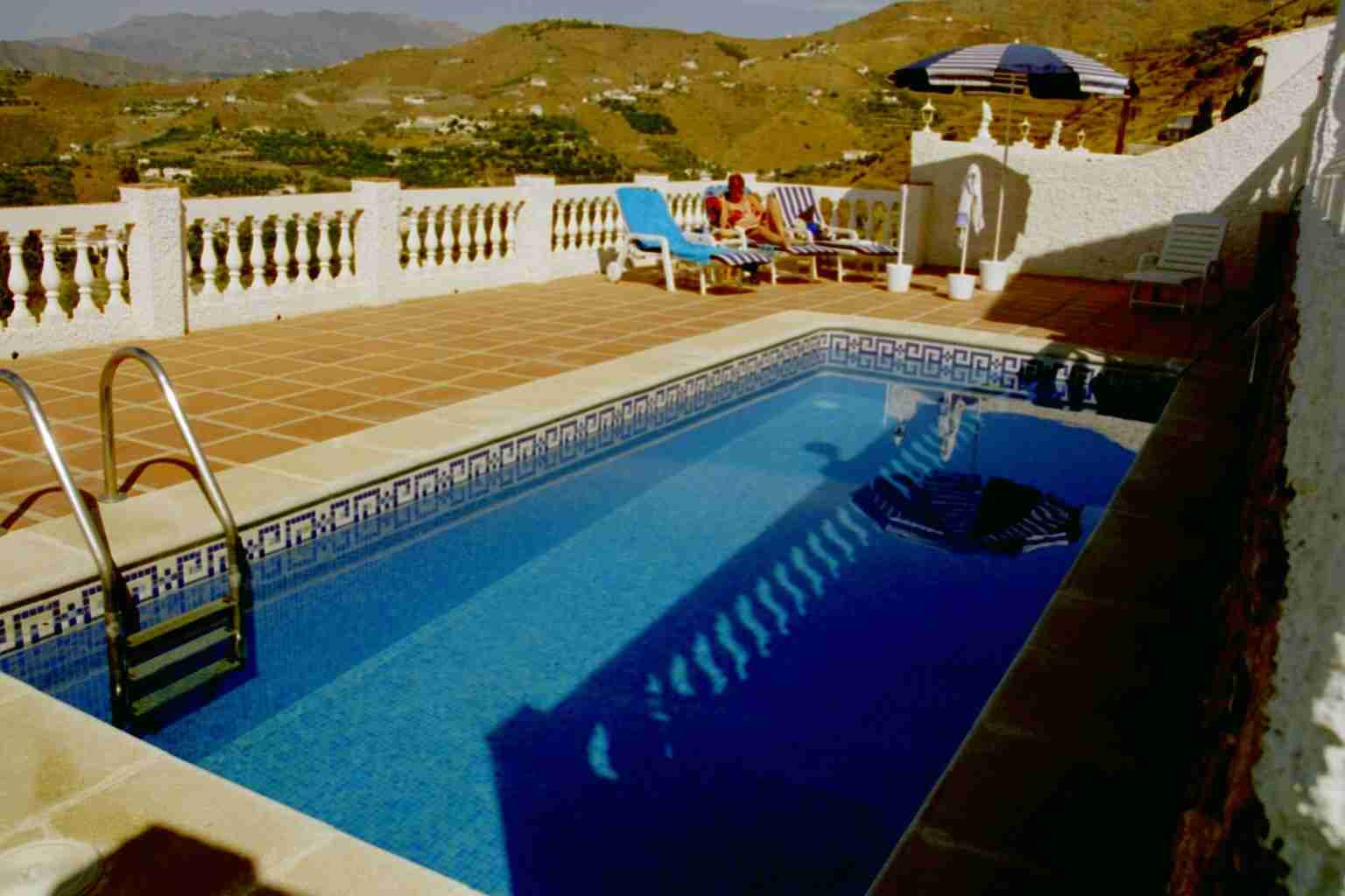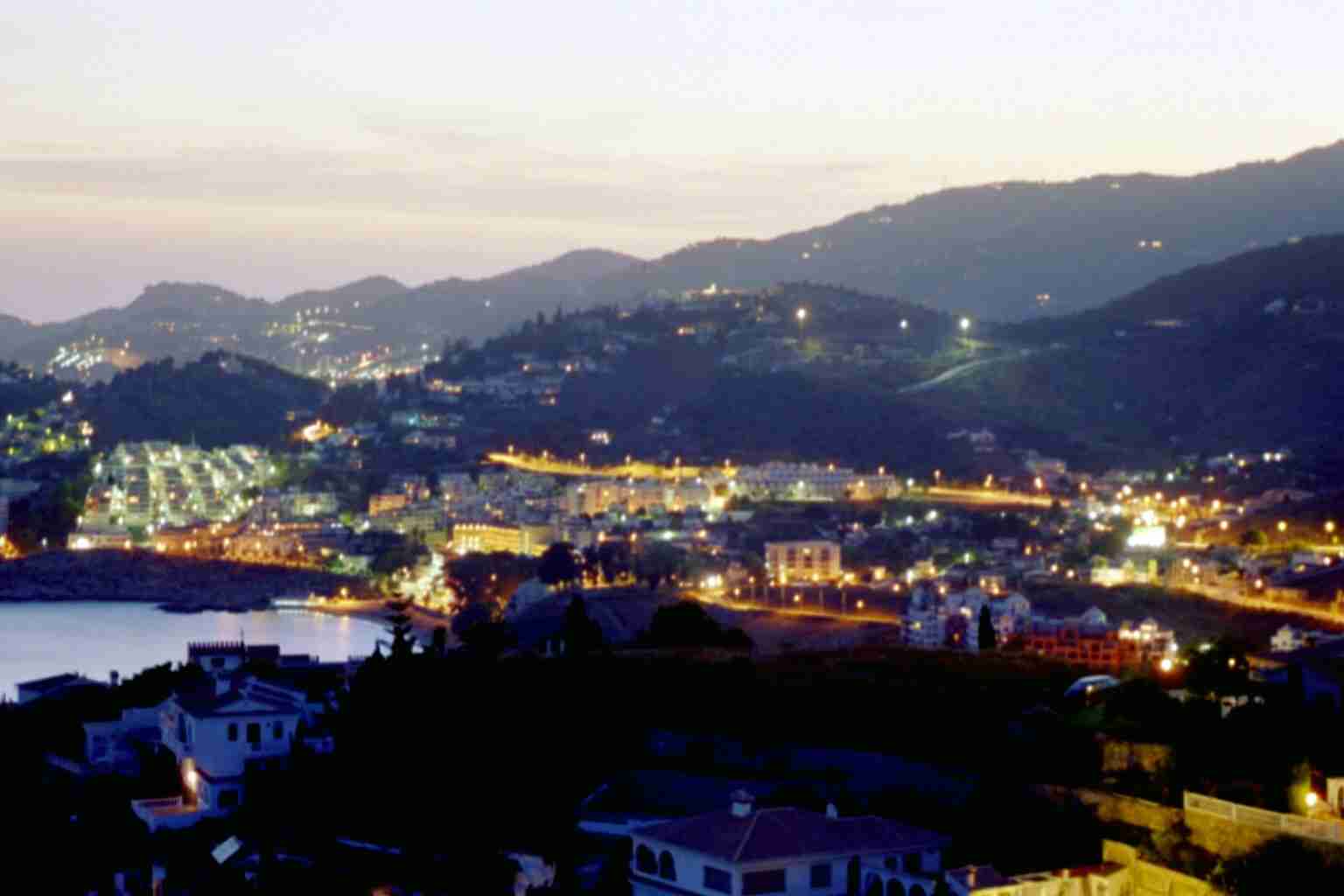 Nach 70 weiteren Kilometern trostloser Steppe erreichten wir wieder die Küste und fanden auch sehr schnell das Büro der Firma "Interservice", wo wir später (ab 16:00 Uhr) unsere Schlüssel erhalten sollten. Da es aber erst 14:00 Uhr war beschlossen wir den nächstgelegenen Supermarkt zu suchen, was uns fast bis nach Malaga führte. Als der schlimmste Kaufrausch abgeklungen war fuhren wir zurück und erreichten um 15:45 Uhr das Büro der Interservice. Vor dem Eingang wurden wir bereits mit erwartungsvollen Augen von drei Holländern erwartet, die uns für die Reiseleitung hielten. Das Büro war noch geschlossen und an der Tür hing ein Schild, dass man nach der Ankunft bitte eine Handy-Nummer anrufen solle. Einen kurzen Anruf, einen Kaffee und 20 Minuten später traf dann auch bereits der Bürovorsteher nebst Tochter ein und führte uns nach den notwendigen Formalitäten zu unserem Domizil. Der Ausblick...